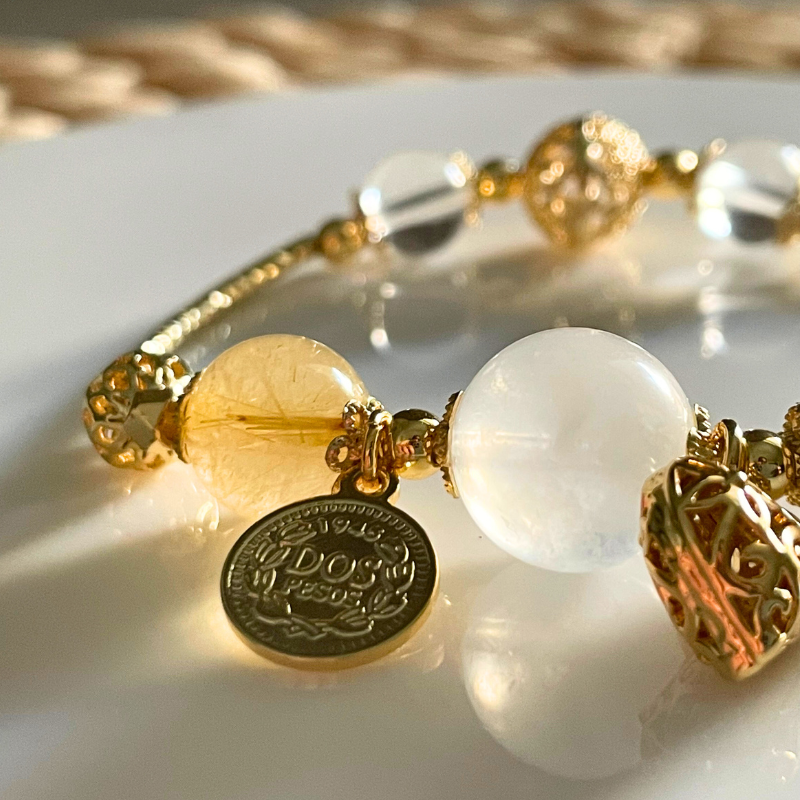 金色麥穗/月光石鈦晶許願手鍊