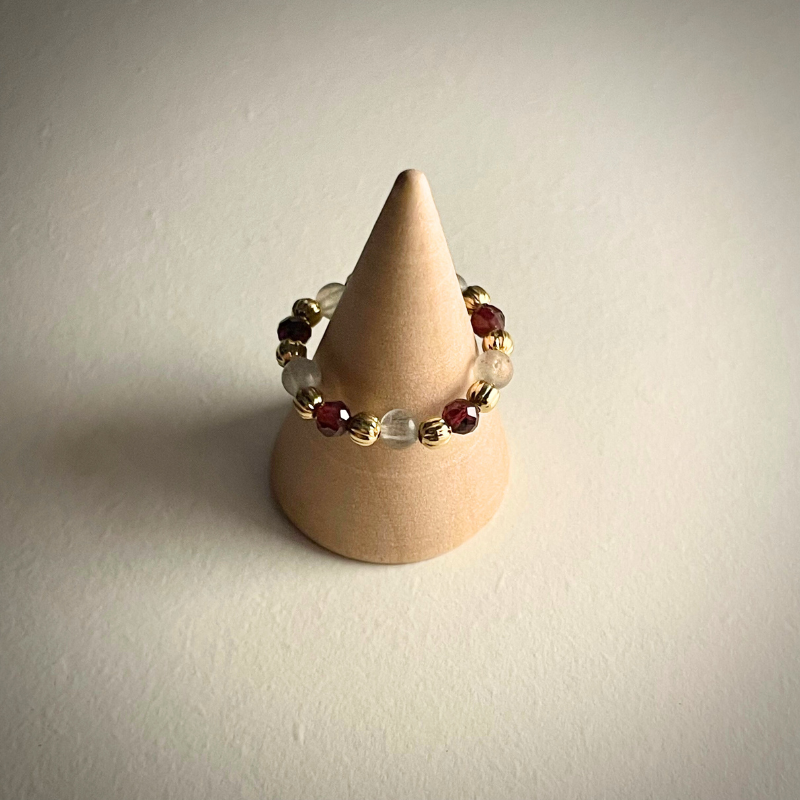 《規格與材質》 紅石榴石、月光石